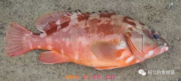 大陆称之为黑边石斑鱼,俗名也称红斑、红鹭鸶,关公鲙,鲈形目,鮨科,该鱼体侧扁,口大。体色多变,大致上鱼体为浅橘红色,头部上半部与背部为红褐色,体侧具5~6条模糊的宽横带,夜晚鱼体则变成橘红色。特征是背鳍硬棘尖端为黑色。尾鳍和胸鳍为圆形。习:生活于4~160米深海域,栖息于礁石斜坡或礁沙混合区。具性转变,为先雌後雄。性凶猛、机警,有领域性。肉食性,以小鱼及小型甲壳类为主。该鱼主要分布于印度-太平洋热带海域,包括台湾南部及兰屿、绿岛海域。本人在斜阳钓获此鱼,据涠洲岛人称该鱼在当地较为少见,属名贵石斑鱼。