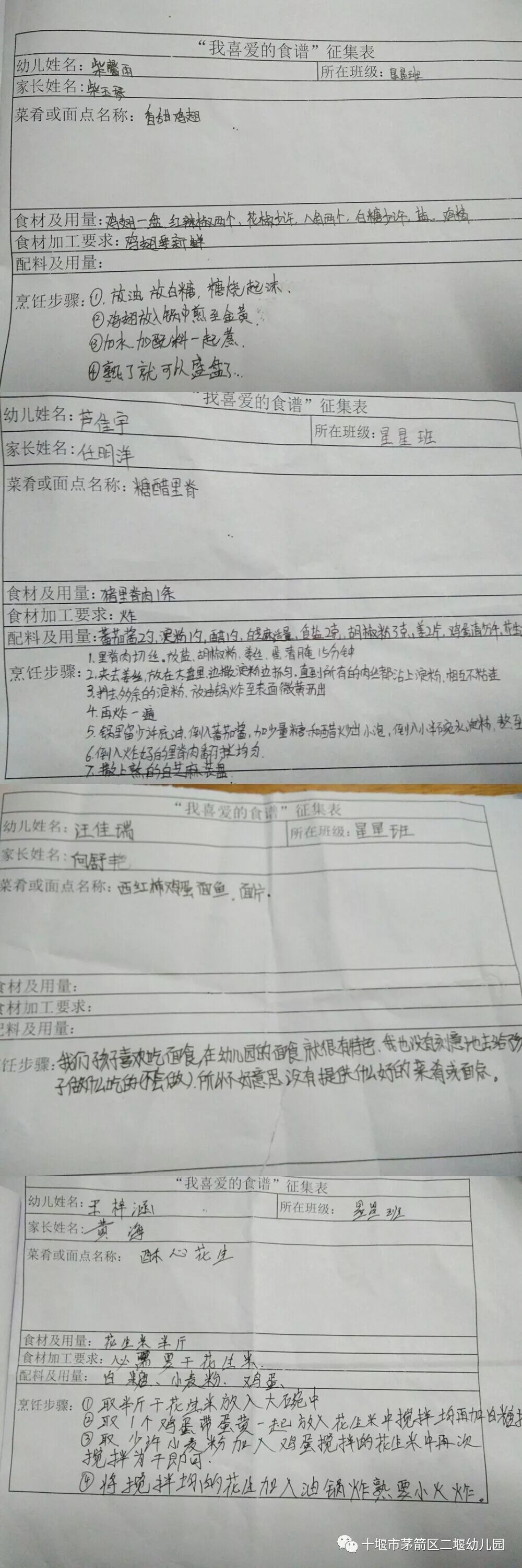 为了更好的了解孩子们喜爱的食物,进一步丰富幼儿园食谱的花样和特色,我园开展了“我喜爱的幼儿食谱”征集活动。