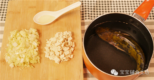 【小贴士】经过50分钟的炖煮,鱼肉会跟鱼刺分离,在加入豆腐和大白菜前把鱼刺挑出,就不用担心鱼刺的问题了。