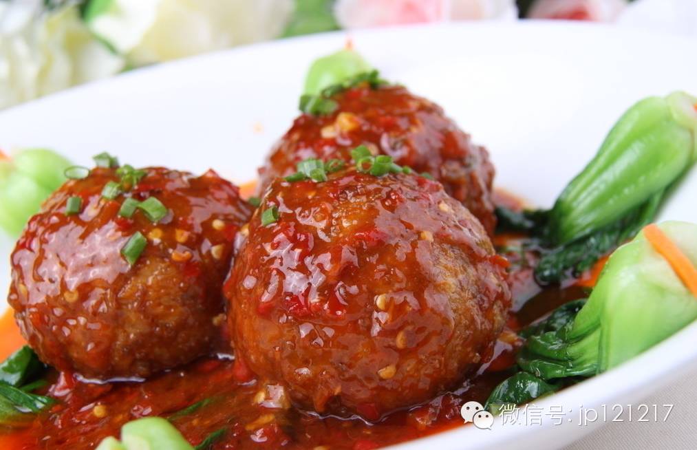 5、将锅中的油倒出,再放回丸子,加入适量汤或清水,大火烧开,改小火焖烧约12分钟,加入黑木耳,竹笋,白糖,胡椒粉,蚝油,酱油,黄酒,烧至汤汁快收干,最后用水淀粉勾芡盛出,盘子边上围上小油菜就行了。这个是比较短时间的做法。
