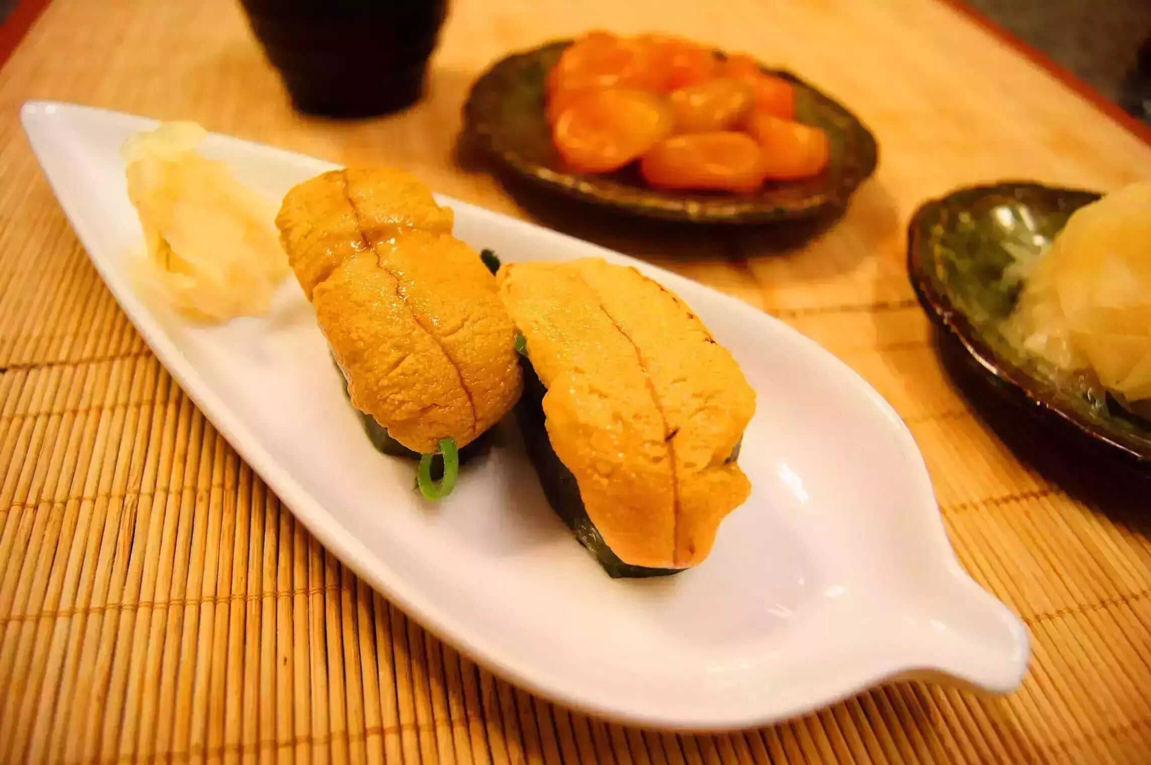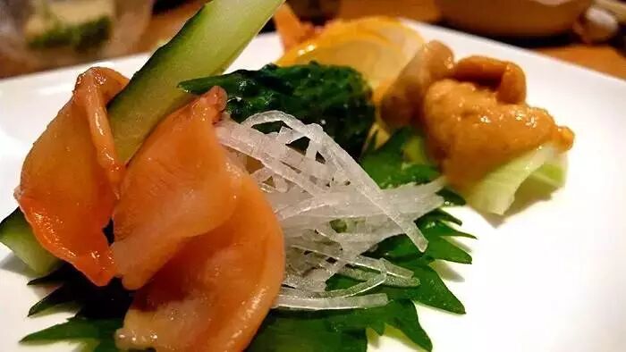 要说海胆浓缩了大海的芳香绝对没有错,海胆有浓郁的贝类的味道。肉质非常软烂,极其像是黄色的豆腐脑。味道一点也不酸,微甜,有淡淡油脂味。由于风味独特,特别受人追捧。一枚海胆里可食用部分不多,而且多要靠人工潜水采集,价格不便宜。
