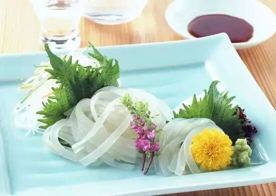 一般说来,红身肉比白身肉味道酸一些,三文鱼例外,而白身鱼肉相对较为紧实一些。按照日本人的习惯,刺身应从相对清淡的原料吃起,一般由白身鱼到红身鱼。吃完一种鱼的刺身,最好是再吃一口黄瓜或萝卜丝,或是吃一小片生姜,以便你再品尝另一种鱼的刺身。好的刺身不仅仅是好的食材,还有刀工和摆盘诸多方面共同决定的。