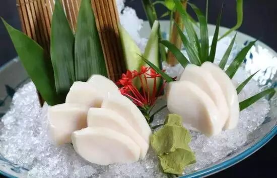 北极贝是国内刺身常见品种,日本见得比较少。由于是煮熟的,肉质较有咬劲,比较脆。吃起来较甜,味道比较鲜,无酸味,无油脂香味。