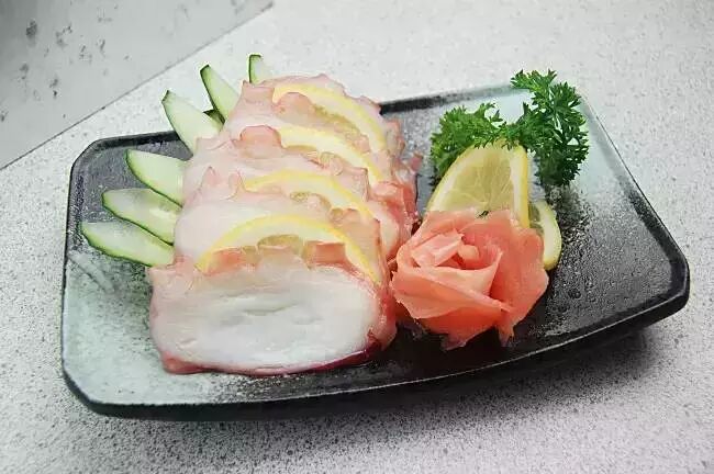 章鱼一般以都是煮熟以后切片作为刺身,肉质有很强的嚼劲,硬一些的甚至于吃起来像橡胶。味道嘛,不酸不甜,也没有油脂的味道。