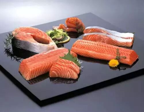 特别漂亮的红白交替纹路,其中白的部分是三文鱼肌间脂肪,味道自然油脂香味重,而几乎不酸,而带有一种微甜的感觉。肉质平衡,不至于十分软烂,但是在这些鱼中还是可以算肉质较软的了。其中以三文鱼中段价格最高,受到大家追捧。三文鱼的鱼腩更加肥美,带有比背部肌肉更加浓郁的油脂味道,对于特别喜欢油脂味道的人来说这个比较美味。
