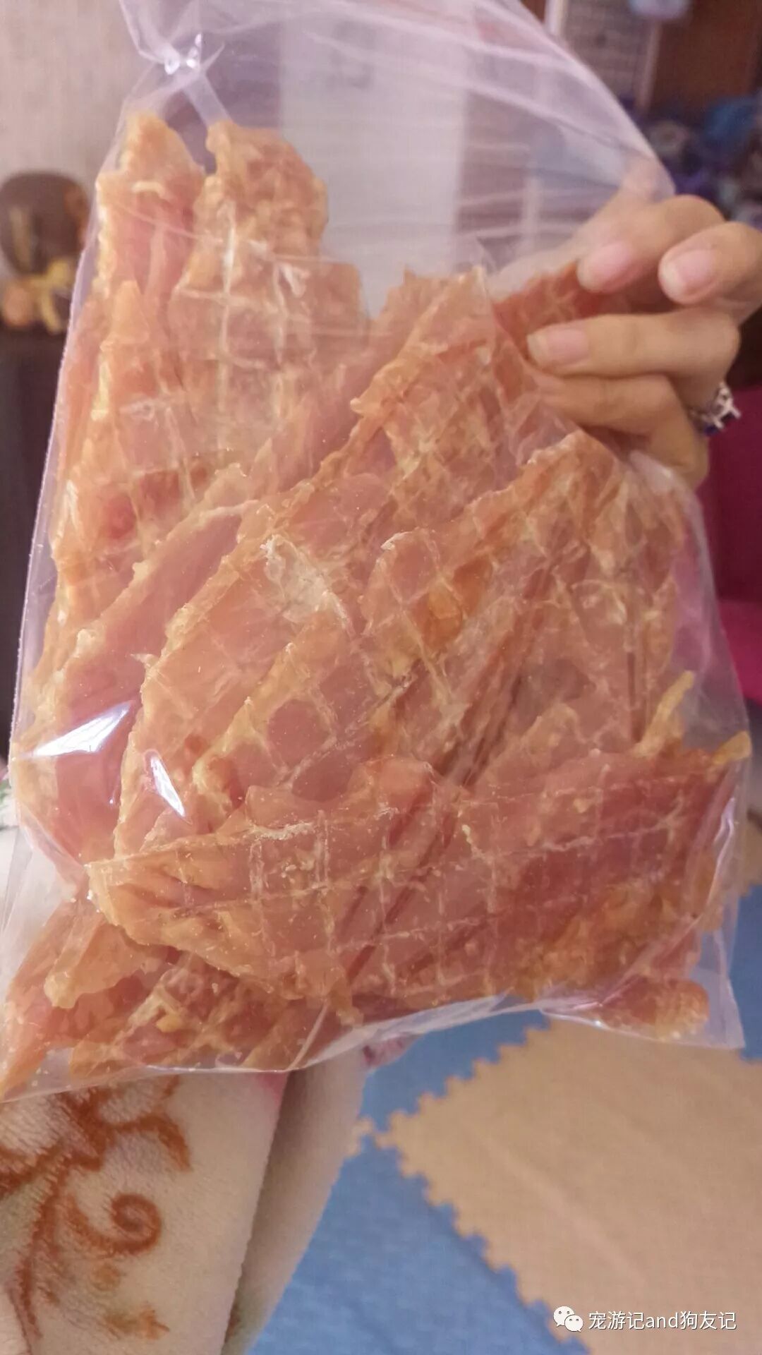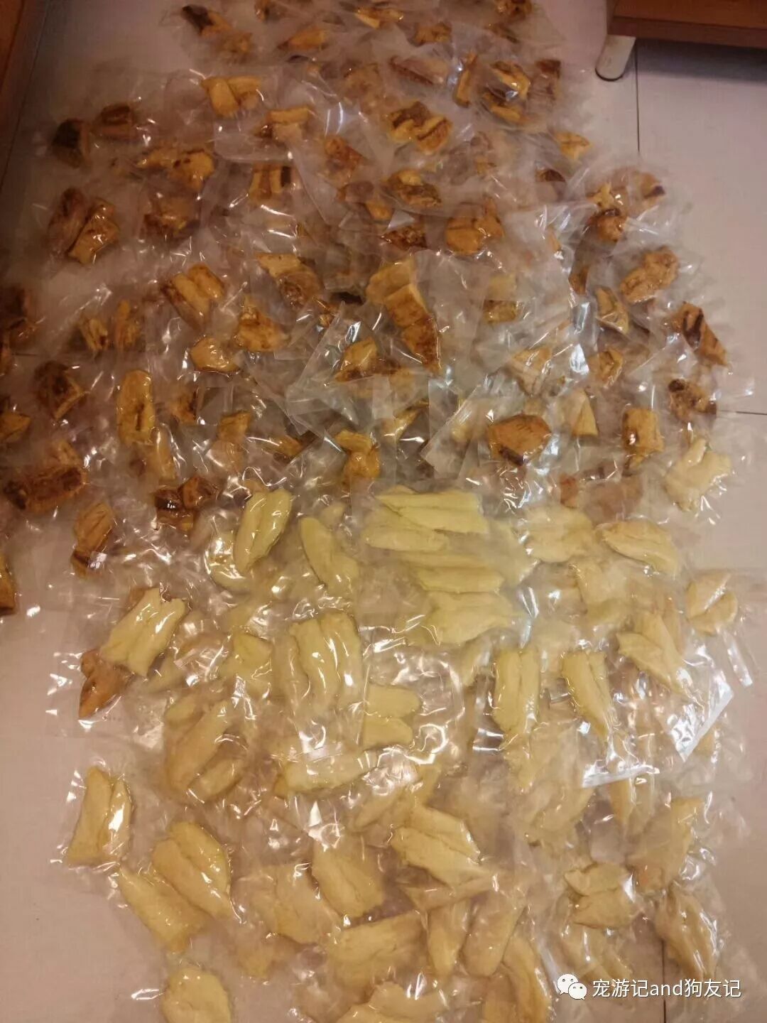 鸡肉干1包+鸭肉干一包+水煮鸡胸肉3包+牛皮磨牙骨3跟