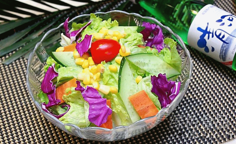 一大波美食正向你袭来红红绿绿的新鲜果蔬,爽口的口感,配上咸咸的沙拉酱,一顿视觉与味觉上的极致体验!