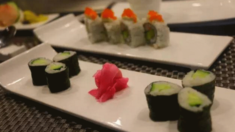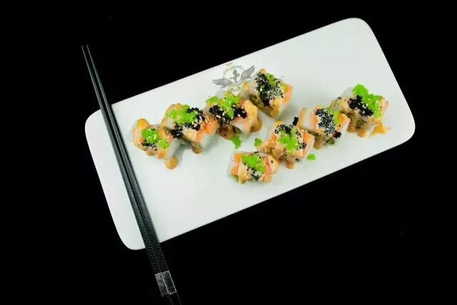蟹籽寿司、加州卷、三文鱼卷、还有许多鱼生手握寿司。