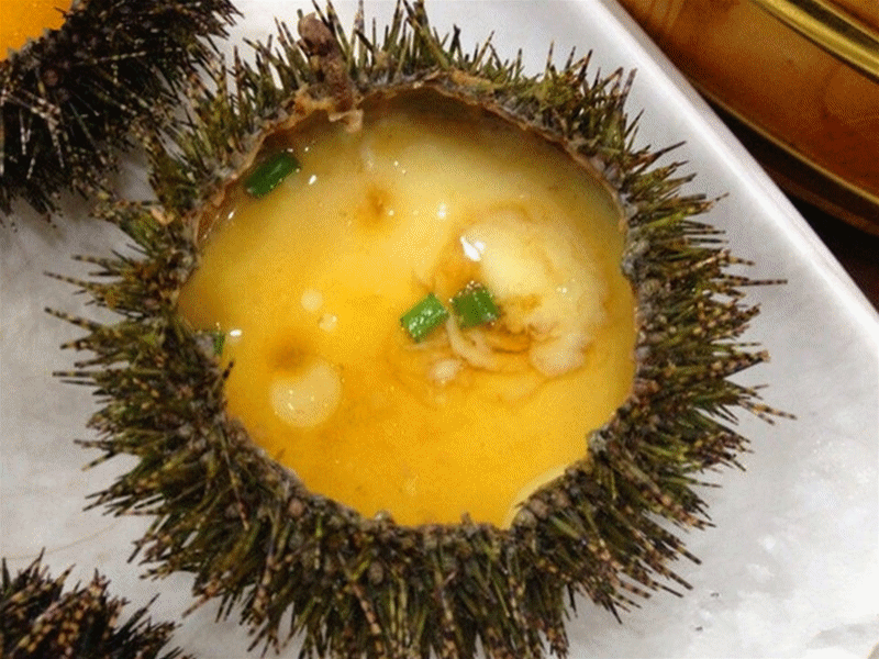 海胆蒸蛋,相辅相成,海胆与蛋,足够的嫩,海胆黄本身就有微微的鲜咸味,可以不加任何调料的。吃时用勺子挖下去,海胆跟蛋羹互相融合渗透的美味就在每一口之间,入口即化回味无穷!