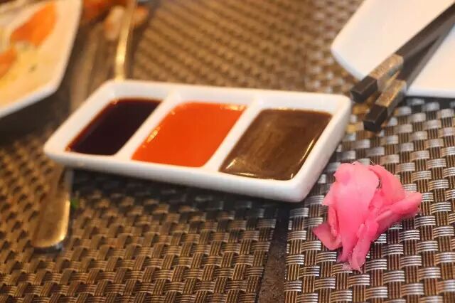 左边是吃生鲜,海鲜蘸的酱油,中间是辣酱,右边是黑椒酱,这个蘸料真的是画龙点睛。三种都很好吃。