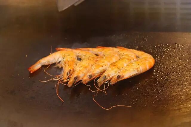 又是一道大家很喜欢的菜色,新鲜大虾在烤盘上滋啦滋啦响,撒上佐料。说吧,你能吃几只。