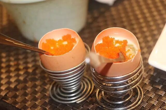 鱼籽QQ的 ,蒸蛋滑滑的 ,用勺子挖着吃感觉很可爱。