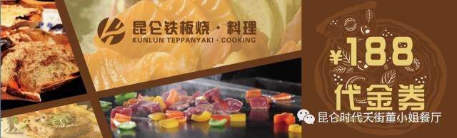 2、此券仅限昆仑铁板烧中午就餐使用。