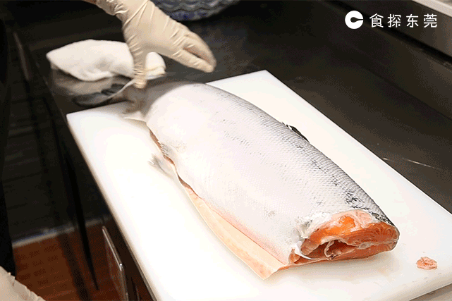 每天新鲜到货!看见这肉感厚实、色泽鲜艳的三文鱼,食探君表示食欲爆灯啦~