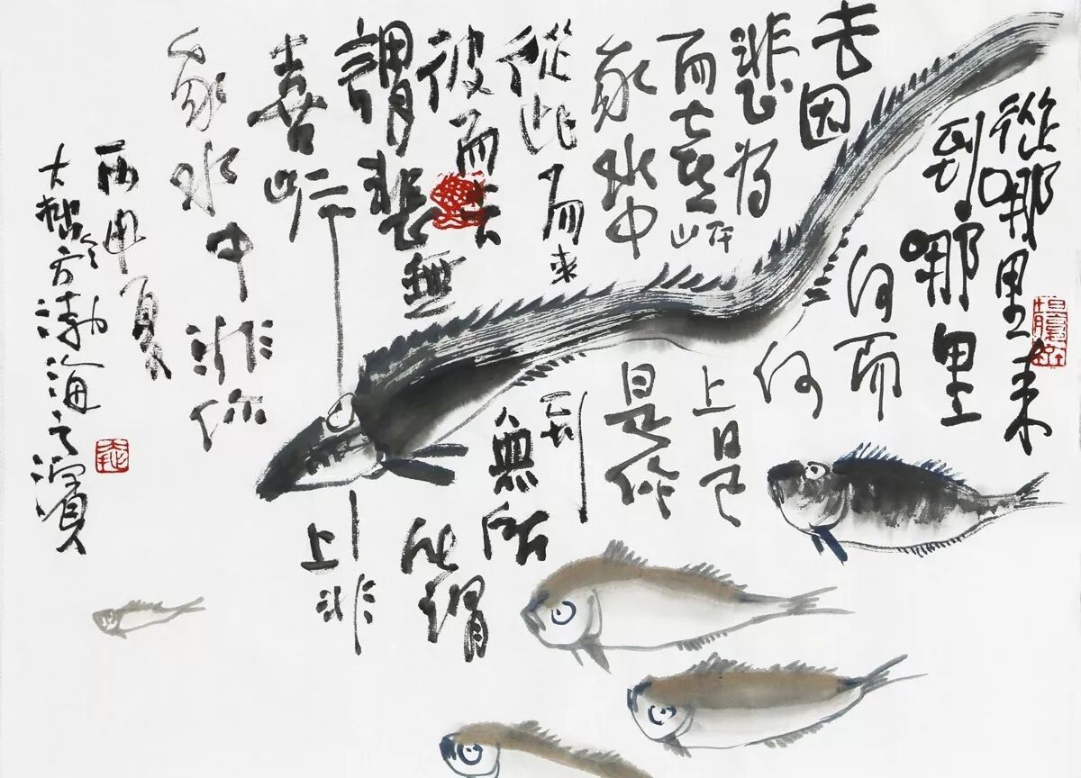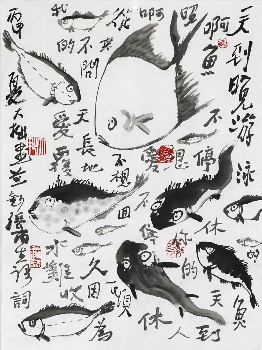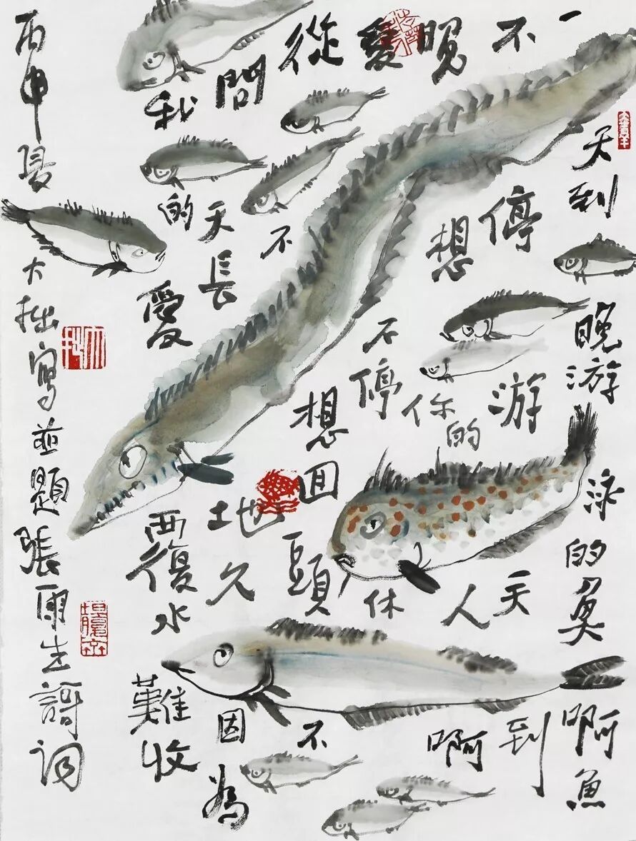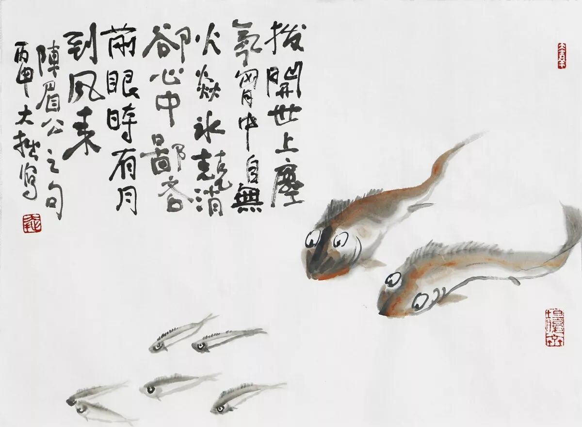 忘了是哪一年,大概是我百无聊赖地刚刚开始画画的时候,喜欢金农这一类的画家,看他题的一些诗,就试着写一写题画诗。画几条鱼,就有一首写鱼的诗,很快吟诵出来,题在画上颇为自得。