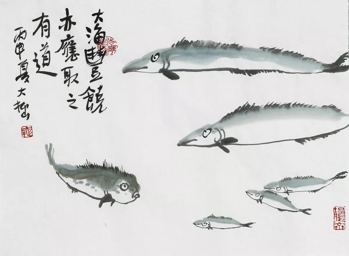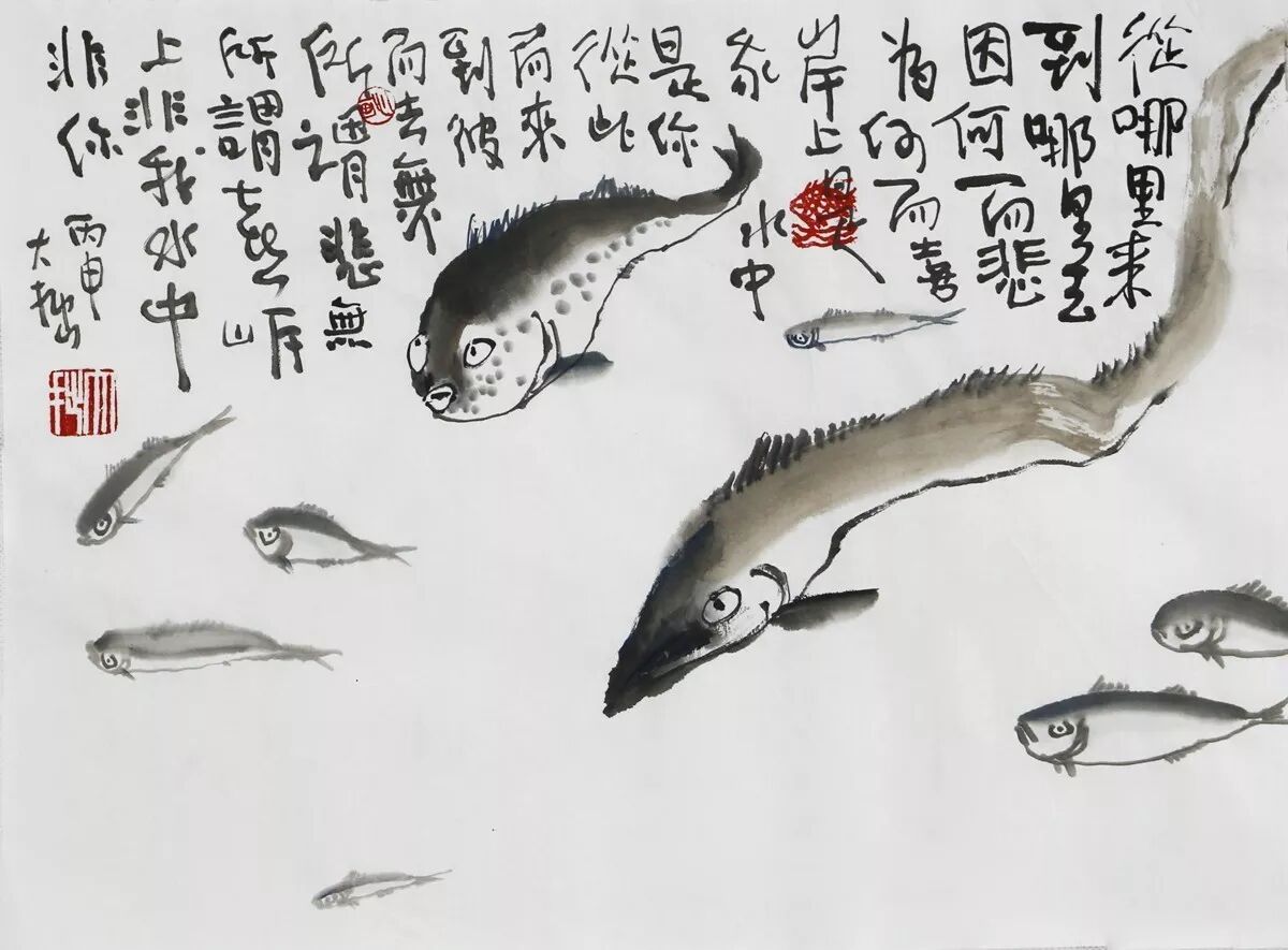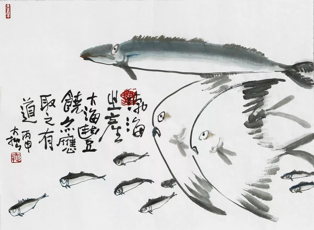 大海比江河宽广许多,其中的生灵有情也该自由快乐一点?庄子估计是到过海边的,他多次提到海,在《秋水》里就写到河伯(黄河之神)见到海神,海神显然是高出一筹的。退回到世俗的世界来说,人们也都是一条鱼,在广阔的大海里,选择的机会也许会多一点,你的心神总会找到一个安顿之处。您若有强大的内心就向前迈一步,可以把风吹雨打当乐子;想舒服一点了,就退一步说话,躲在老旧的屋檐下喝杯茶,静一静,享受那俯仰静观之乐。追求自由富裕的生活,想要舒适愉悦的情绪,似乎也没什么错,面对严酷的现实总要找点宽慰和乐趣。关键是心里想的要宽广一点大一点,做一条海中之鱼,感受海水的咸味,水中的波澜。