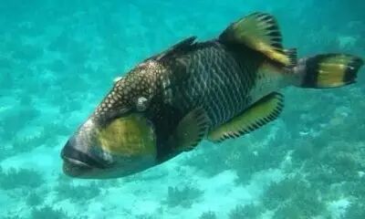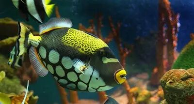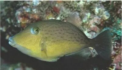 黄褐色,腹部为黄色。身上带有深色斑点。600升以上水族箱饲养,最好带石头及洞穴。它会把石头重新排列。会发出“咕咕“的声音。需要提供各种动物性饵料,包括:鱿鱼、虾、贝类、小鱼及硬壳虾帮助其磨磨不断成长的牙齿。