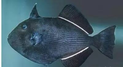 也叫印度炮弹或黑尾炮弹。绿褐色的身体布满深色不规则条纹,臀鳍及背鳍下面各带一白边。幼鱼其呈黑色。450升以上水族箱饲养,最好带石头及洞穴。它会把石头重新排列。需要提供各种动物性饵料,包括:鱿鱼、虾、贝类、小鱼及硬壳虾帮助其磨磨不断成长的牙齿。