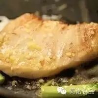 ⑦ 放入银鳕鱼,两面要均匀的煎,放入芦笋。