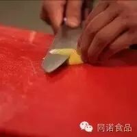 ④ 热锅,同时切一些柠檬片,切成小丁。