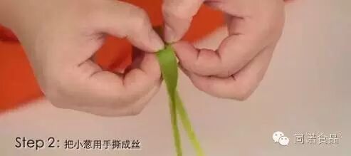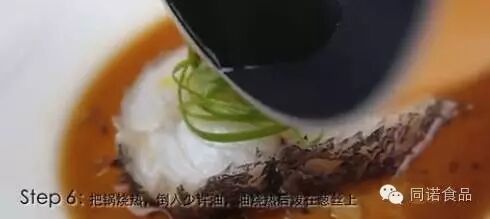 ⑥ 把锅烧热,倒入少许油,油烧热后泼在葱丝上。