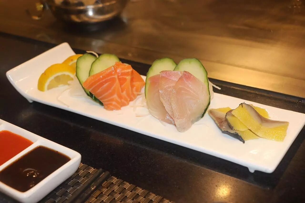 刺身拼盘、三文鱼、北极虾、生蚝、章鱼刺身