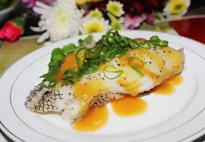 3 、等银鳕鱼变为金黄色,起锅装盘。撒上沙拉酱及芥末酱,或可挤上柠檬汁,即可享用。