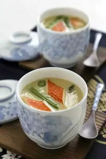 清蒸热配菜:蒸菜在日本料理中,大多以汤羹形式出现,主料多为海鲜或鸡蛋,用昆布柴鱼高汤或日式米酒吊出鲜味。因为都是连汤带水的热乎菜,日料菜单常常将蒸物与下面的煮物归作一类。