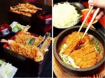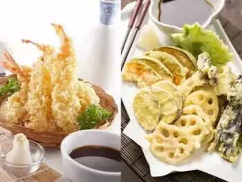 薄浆炸一切:虽然日本料理以清淡著称,但日本人对油炸菜式的喜爱也很有名,几乎所有食材都可以裹上特质的轻薄粉浆入油锅,炸出外酥里嫩的销魂口感,再配上清爽的卷心菜、萝卜泥,蘸以柴鱼高汤和日式酱油。最为人熟知的炸物当属炸虾天妇罗,不过天妇罗并不只一种——关东地区流行的是我们常吃的那种,不能用来做天妇罗的食材只有米和谷类;关东地区流行的则是油炸的鱼浆制品,又叫甜不辣。