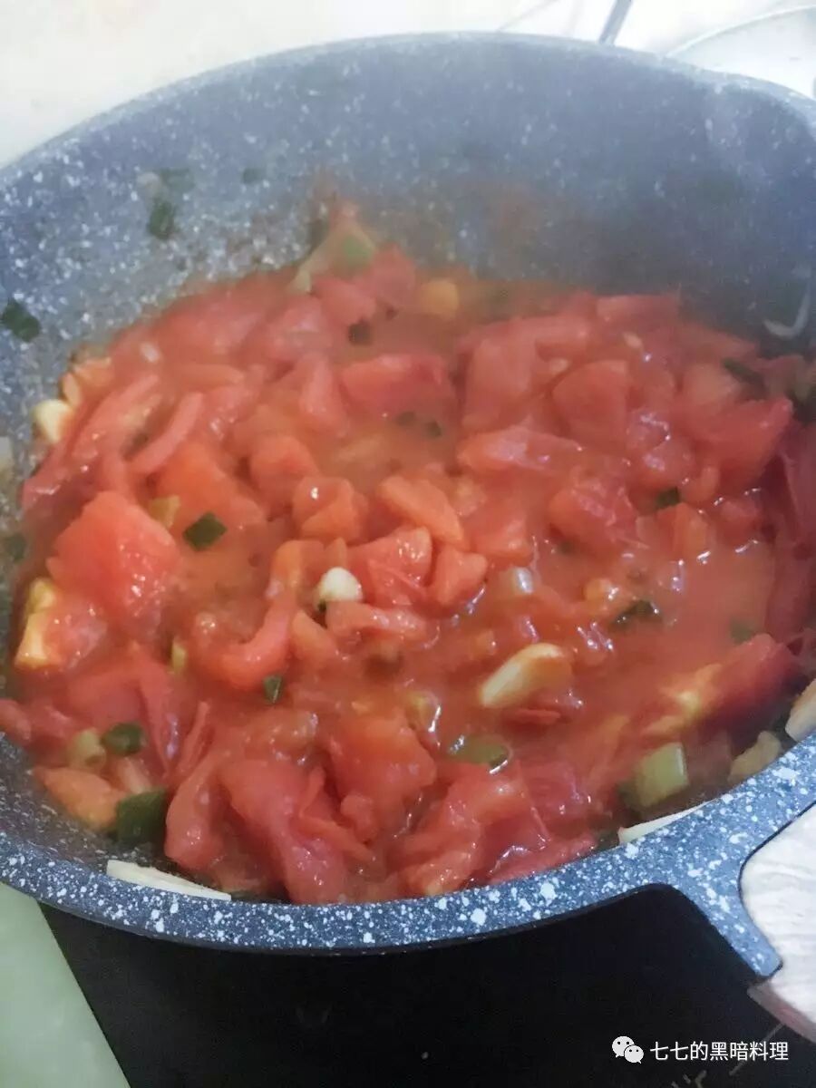 放葱蒜爆锅 炒西红柿 炒成快糊糊的状态 这样应该会让鱼更入味儿