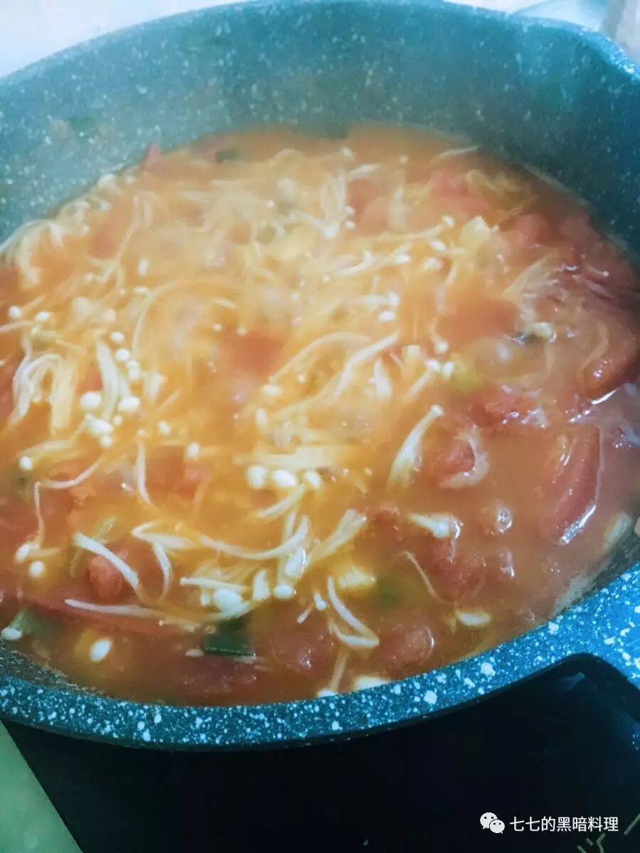 放入金针菇 加水 炖个几分钟