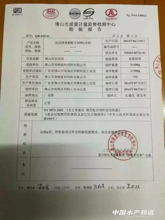 这是2014年6月29日,国家质检机构到蓝科对饲料产品进行抽检,结果表明,产品各项指标不存在问题。