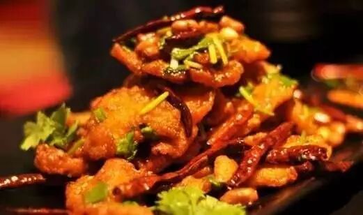 2、然后把干辣椒和花椒放入锅中爆香再把切成小片的芹菜和炸好的巴沙鱼放入锅中稍加翻炒