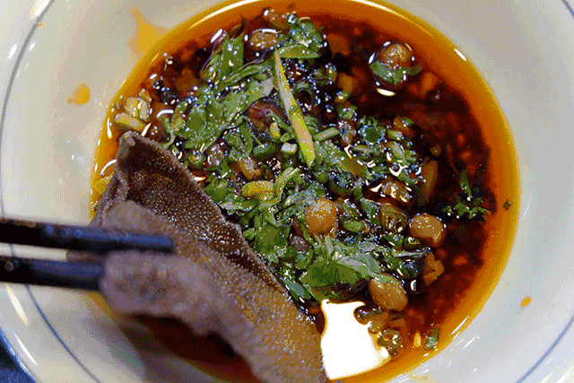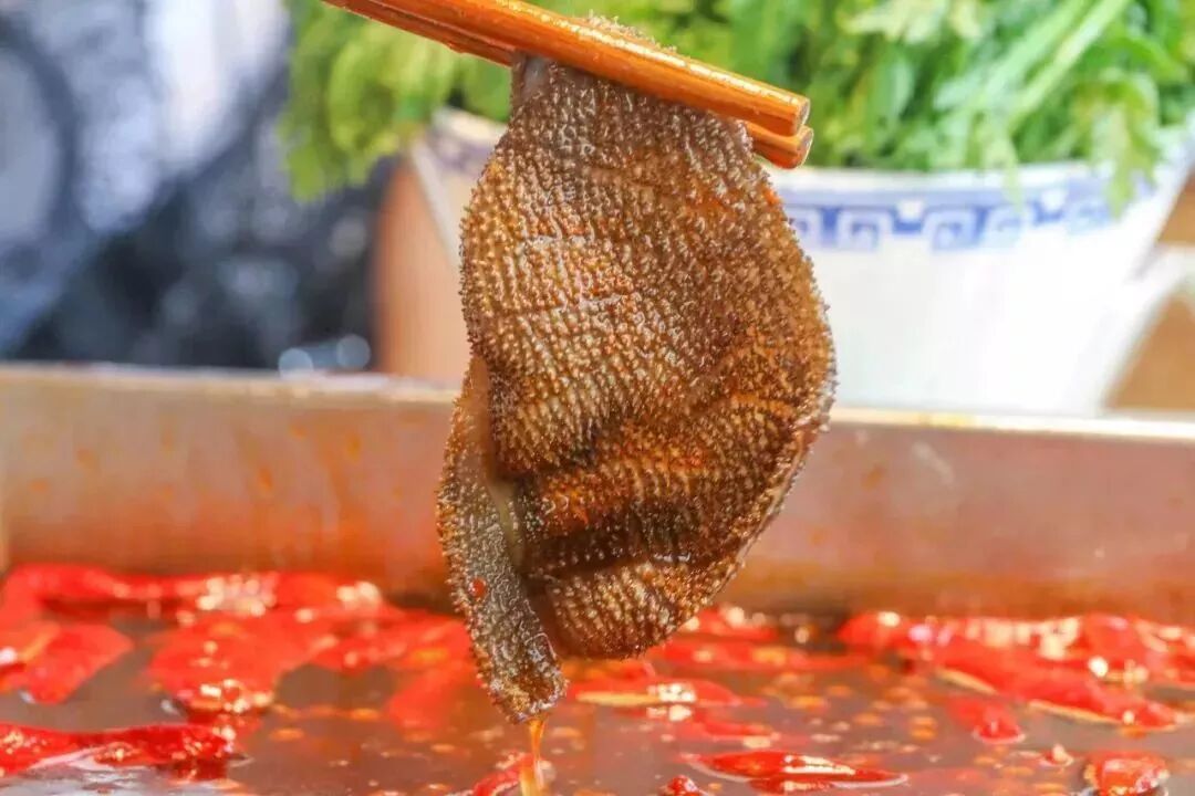 毛肚表皮百叶褶皱吸收了红汤里的精华,