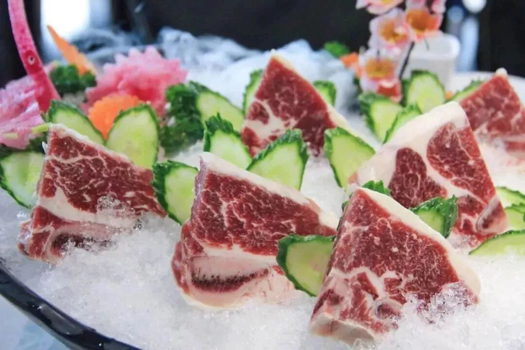 羊肉卷在冰面上凉爽的躺好,
