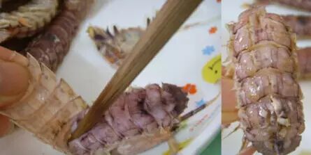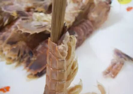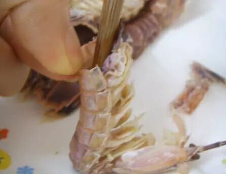 从头部开始往下数第四节开始把边上一侧的壳轻轻掀开,一手捏着头,另一手拿着壳一掀就搞定了。怎么现在才看到这个,这么多年,我是浪费了多少肉肉~!吃货们赶紧get新技能吧!哈哈