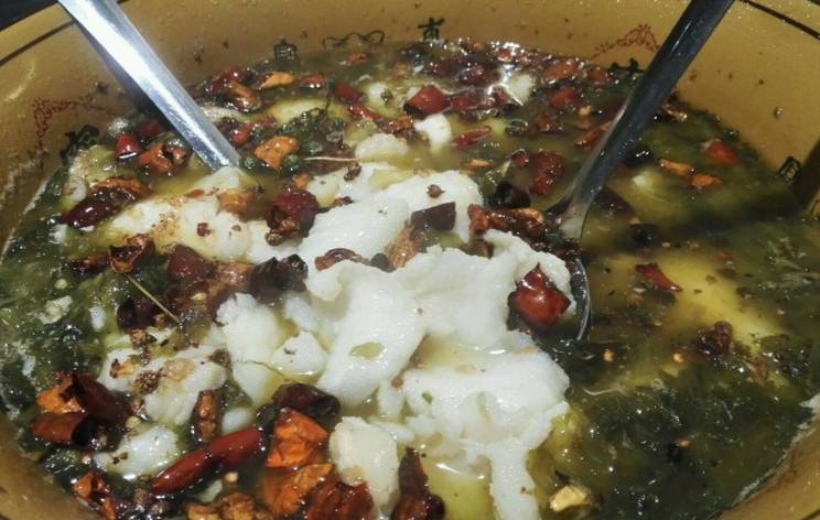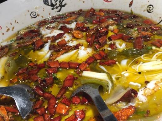 这家店的鱼好吃之处就是鱼肉嫩滑,而且不是包很多嫩肉粉的那种滑,汤底微辣,一锅非常大份,性价比很高。