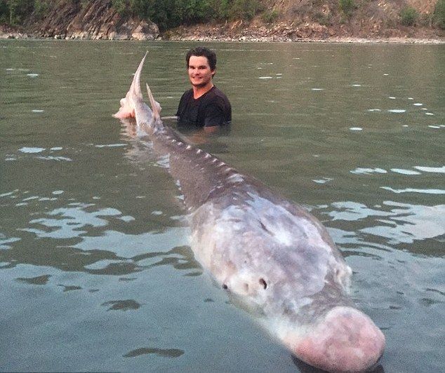 鲟鱼被认为是原始鱼,它们从三叠纪到现在没有改变过容貌。猪鼻子长10英尺,约80来岁。去年是650磅,今年又增重了50磅,估计伙食不错。