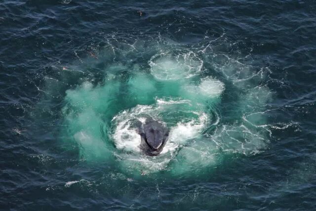 就像人类一样,驼背鲸用“网”一次捕获大量的鱼,但它们的网是由气泡制成。气泡捕鱼是驼背鯨独特的狩猎方式,这一优美壮观的场面被史密斯森协会用无人机拍摄了下来。