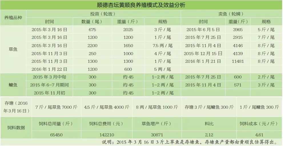 经过计算,黄顺良其中一口5亩的池塘,草鱼养殖料比只有2.12,长1斤鱼饲料成本仅为4.6元。而且,因为黄顺良只养草鱼与鳙鱼,没有再搭配任何其他鱼类,饲料没有被套养鱼摄取,最直观、科学地反映了料比。