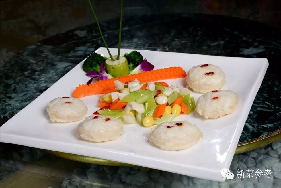 灵感创意来源于藕夹,将原有的肉馅替换成鱼香味更爽口的巴沙鱼,不腻反鲜;将巴沙鱼打成泥状调味打上筋,制成鱼茸把莲藕切片后,将鱼茸酿在藕片上,上笼蒸8分钟,摆在盘中,把炒好的鱼丁放在盘中间即可。制作难度:★