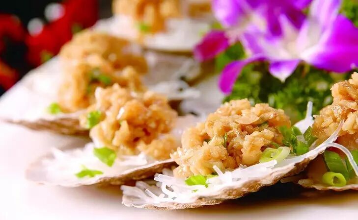 一碟贝。粉丝蒸扇贝,多么传统又多么经典的海鲜菜品。当然,这一菜式称不上南沙特色,但绝对也是海鲜餐不可或缺的一部分。如果想换换品种,从熟悉的生蠔、鲍鱼到叫不出名字的各种贝类,选择多多,口味任拣。