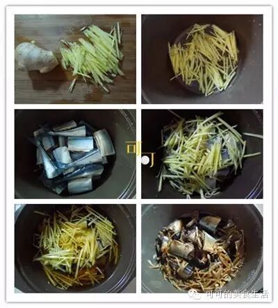 3、4小时后把鱼取出冲洗干净。姜连皮切细丝,先在锅底铺一层姜丝,防止鱼肉粘底,再在上面把鱼铺好,最后上面盖满一层姜丝。然后倒入生抽、白糖、醋、米酒、味淋,再加清水把食材盖没。