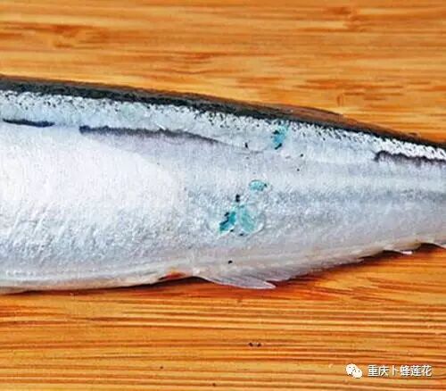 鱼鳃以鲜红为佳,不能有血水渗出。如图为不佳的秋刀鱼。