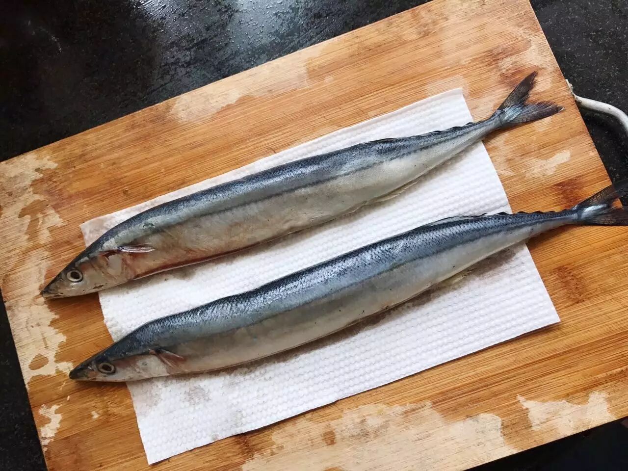 Step1:秋刀鱼洗净,用厨房纸擦干水分;