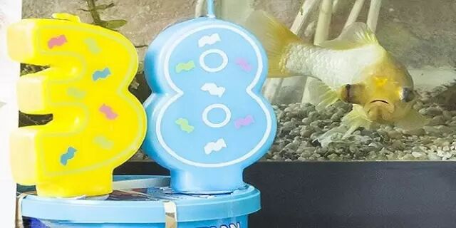 最近家人刚刚给他举行了38岁生日party,金鱼也收到了自己38岁的生日礼物——盒鱼食。