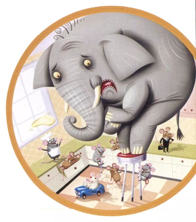 粉碎流言:尽管听到自己无法分辨的怪声时大象会变得焦虑不安,但它们的眼神儿实在太差了,根本看不清一只小老鼠。再说了,大象的栖息之处满是凶猛的捕食者,比如老虎、犀牛和鳄鱼,这些它都不怕,因为它的长鼻子可厉害了,一只小老鼠又算什么呢!