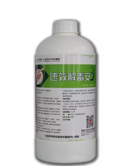 ②生物原因:先解毒再肥水培藻;常用套餐:【速效解毒安】(5-6亩/瓶)+【利水素】(4-5亩/包,加红糖活化后泼洒)+磷肥(8斤/亩)。