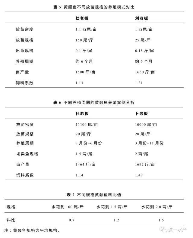 黄颡鱼养殖周期越长,黄颡鱼最后出售的规格就越大。我们从表7中可以看出,黄颡鱼规格越大,对应的料比会越高。