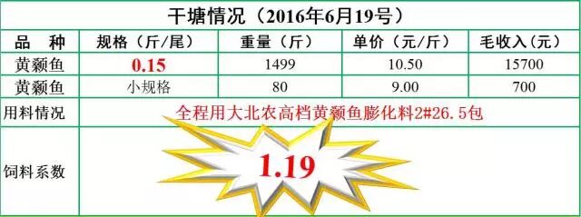 大北农高档黄颡鱼膨化料今年首次进入湖北枝江市场,经沟通,确定在有多年养殖黄颡鱼经验的两位老板的小塘试用。直到6月份干塘,结果让他们喜出望外,